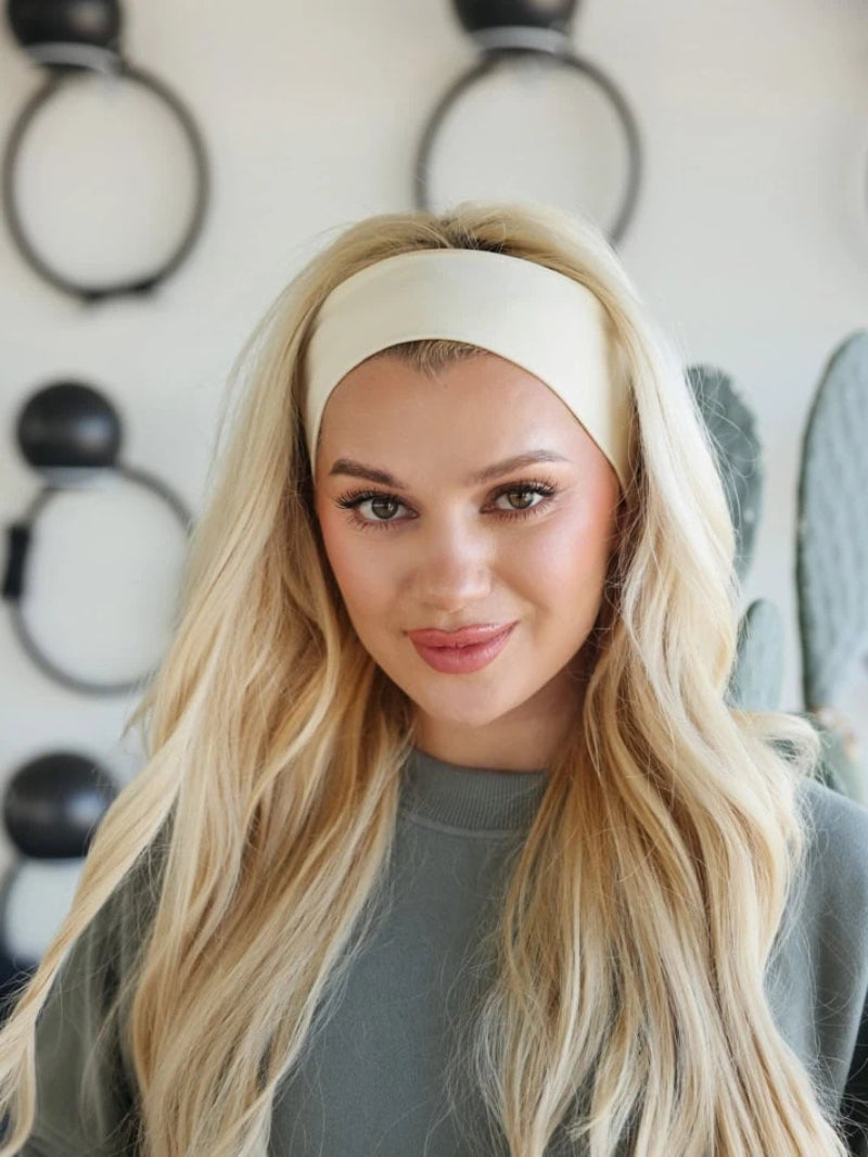 Opaska do włosów Fitulka Cream została uszyta z delikatnego, beżowego materiału, który świetnie współgra z każdym kolorem włosów.